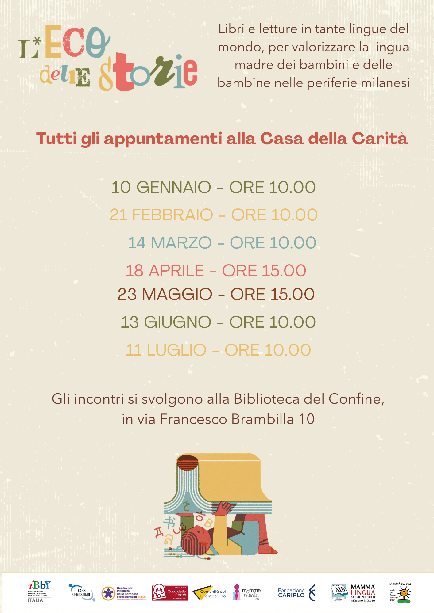L’iniziativa è dedicata a bambine e bambini dai 3 agli 8 anni ed è il quarto appuntamento promosso dalla Fondazione nell’ambito del progetto “L’Eco delle Storie”, che per tutto il 2026, ogni mese, proporrà letture per valorizzare la lingua madre dei bambini e delle bambine che vivono nelle periferie milanesi.